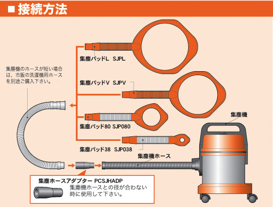 屈曲性に優れた集塵ホース一体構造と吸着性に優れていますので、壁面、天井への取り付け可能 目盛り線入りで位置決め簡単 乾湿兼用(集塵機は湿式対応機種をご使用ください) コアドリル、ドリルビットの長さに関係なくご使用頂けます ミストダイヤ、ウェットモンドコアドリルにもご使用頂けます 集塵パッド用プレート38は、位置決めガイドとしてもご使用頂けます