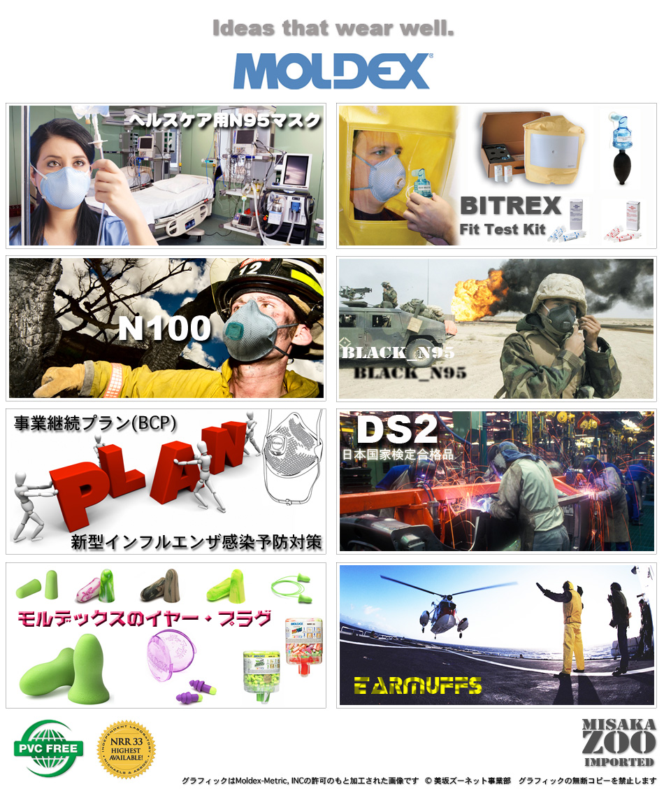 Moldex N95マスク、N100マスク、Bitrexフィットテストキット、耳栓、イヤーマフ 安全衛生商品の専門店 Misaka Zoo 美坂ズーネット事業部