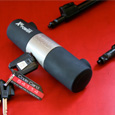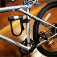 六角レンチで取付けます。位置は任意の取付可能場所を選んで下さい。運転中はUロックをブラケットに取付けて自転車などに傷をつけることなく収納できます。 |
