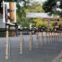 くい丸は、建設土木現場から、鉄道の線路脇の杭に、また、神社、公共スペースなどのフェンス杭としても